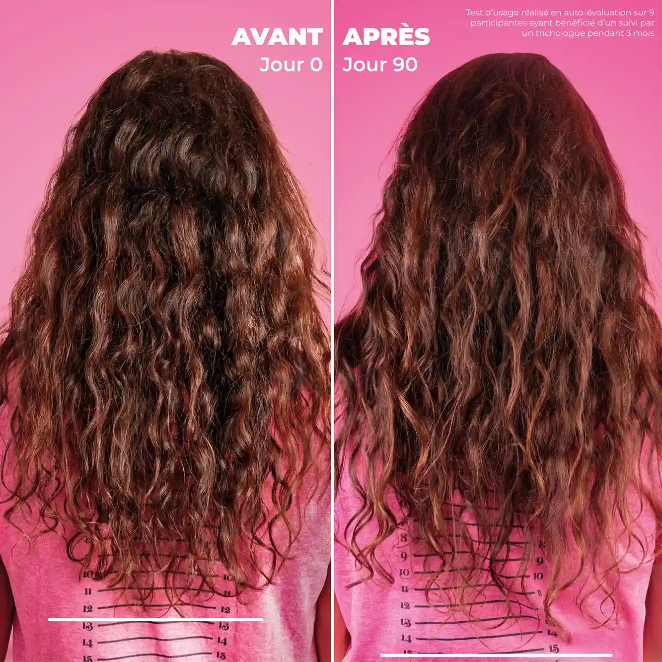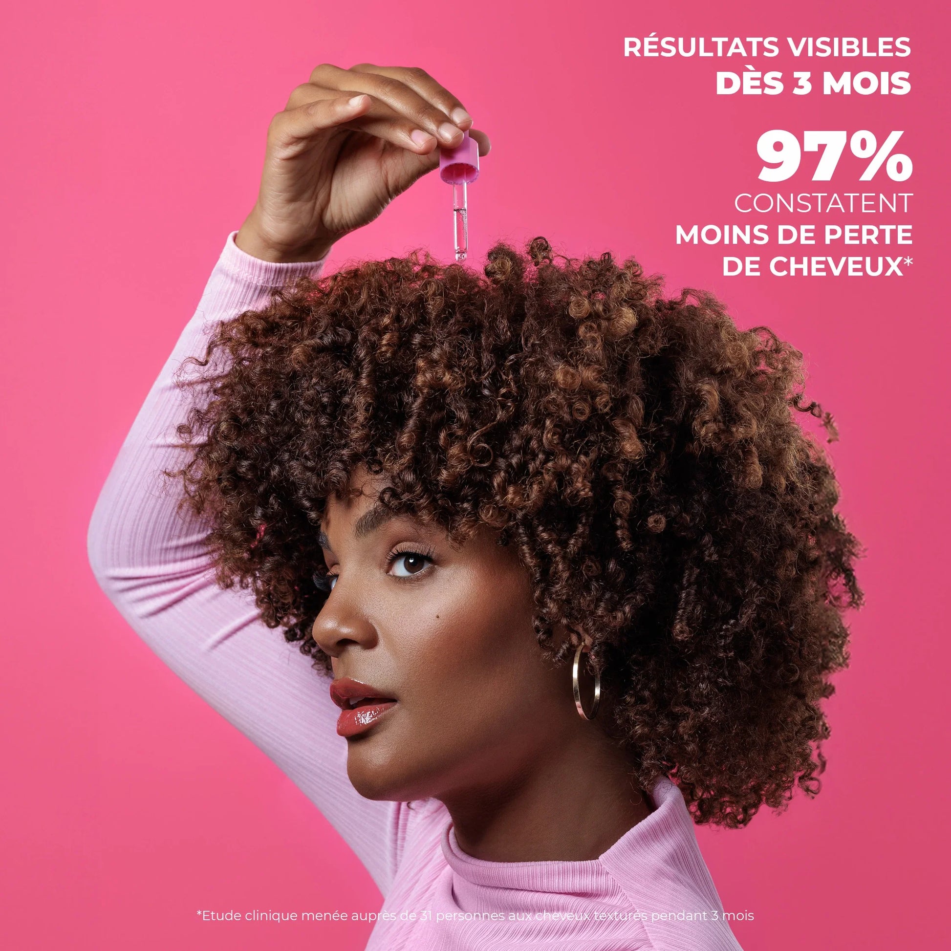 - 100% des testeurs valident une réduction de la chute de cheveux**